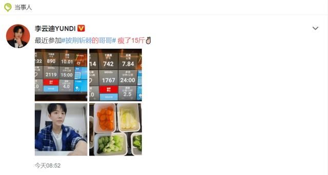 《披荆斩棘的哥哥》李云迪微博晒出自己减肥15斤前后的对比照。减肥15斤前后的对比照,看起来脸真的瘦了不少,这是运动+控制饮食吗的成果吗?