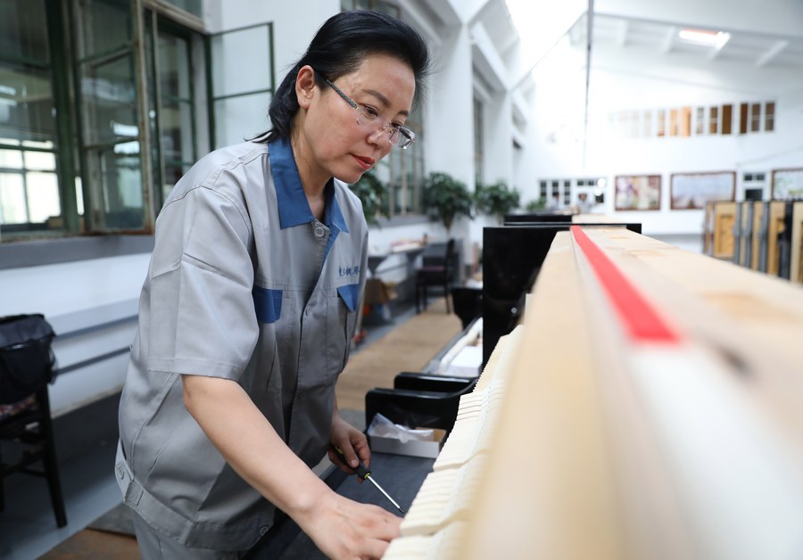 张晓文在车间内组装调校钢琴。新华社记者 姚剑锋 摄
