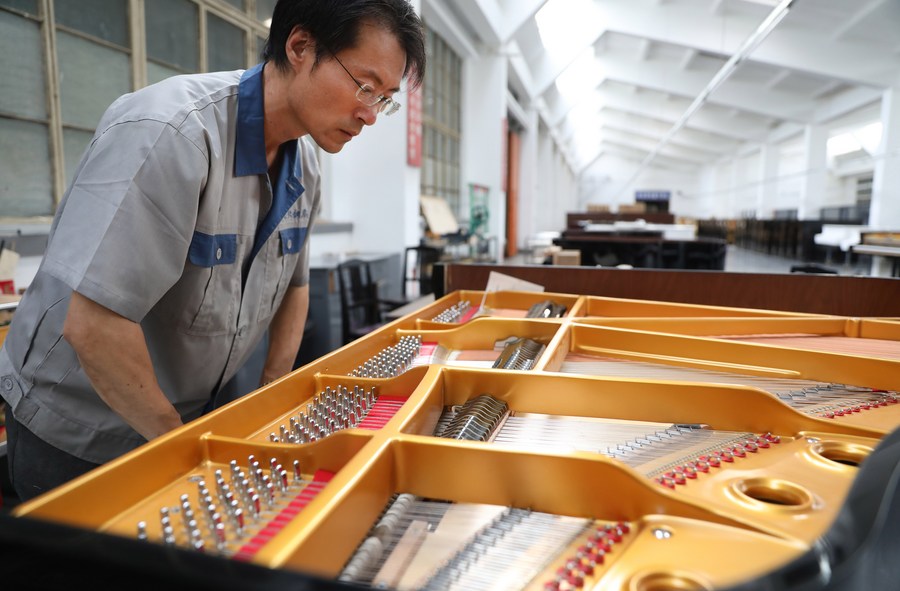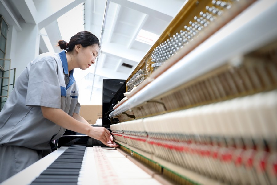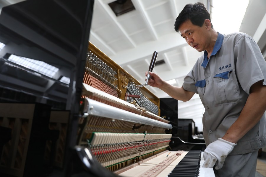 一名工人在车间内组装调校钢琴。新华社记者 姚剑锋 摄