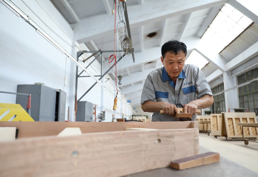 周雄在车间内打磨钢琴组件。新华社记者 姚剑锋 摄