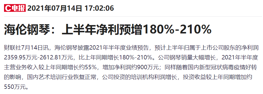 但行业的基本面可能正在面临变化。从今年的业绩来看,中报季两股业绩均预增超过170%,相比去年有望实现翻倍。关于业绩预增,海伦钢琴给出的原因是随着国内疫情好转,国内艺术培训行业恢复正常,公司投资的培训机构利润增长。