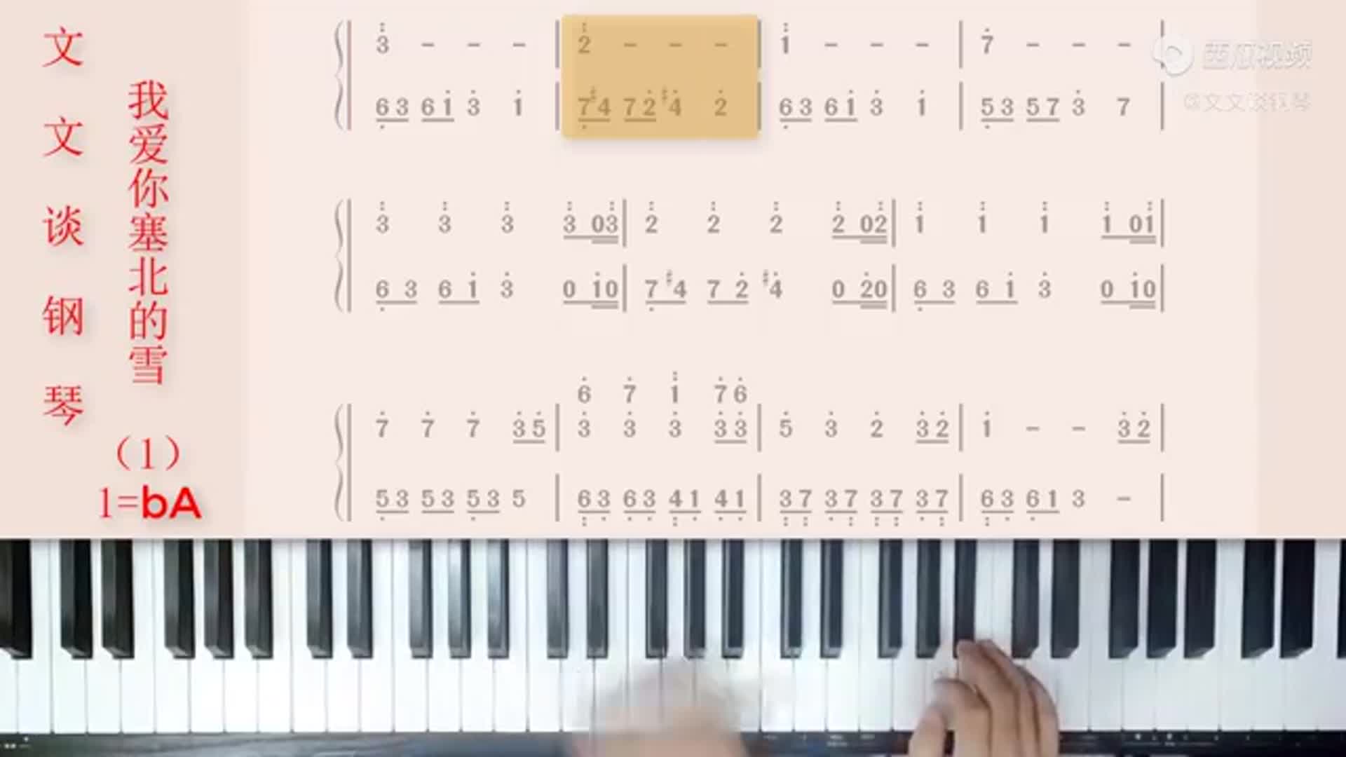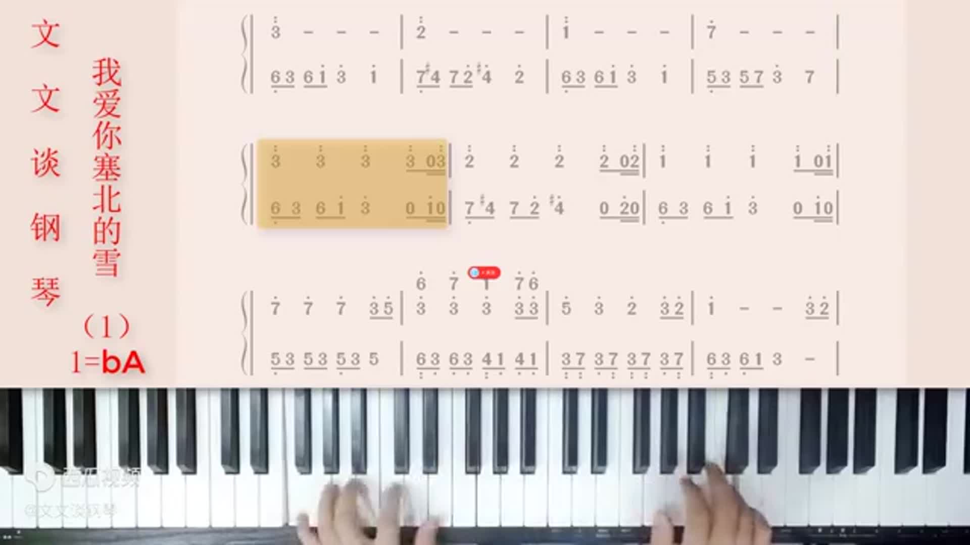 这里截取了《《我爱你塞北的雪》文文谈钢琴即兴伴奏教学1【收藏】》视频部分截图给大家: