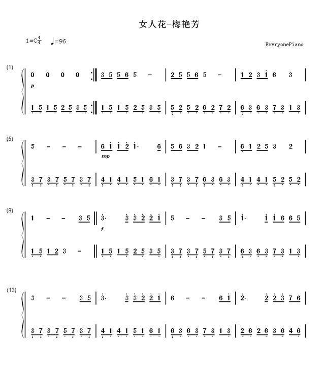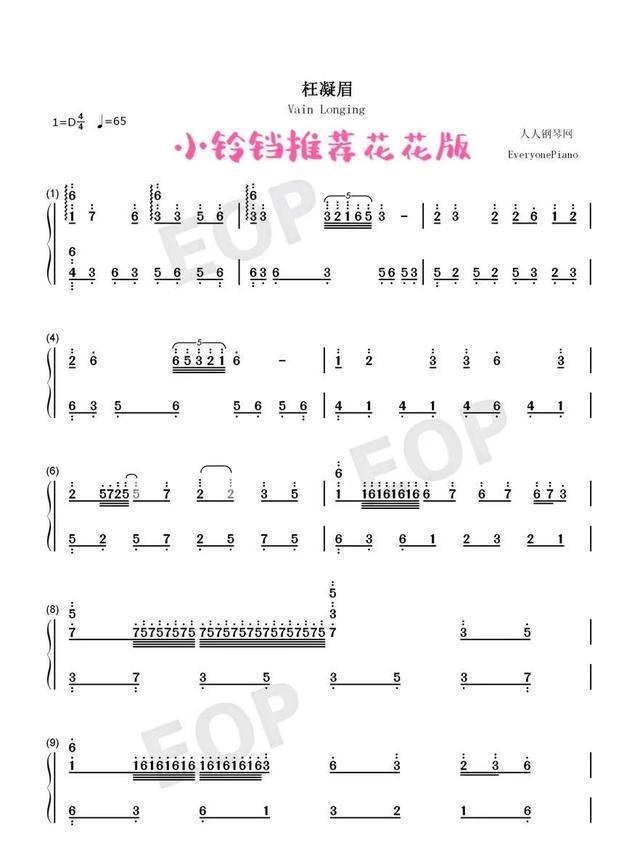 > 钢琴即兴简谱《枉凝眉》《女人花》